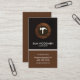A design that has two elegant columns. At the top layer, the cover is a wood grain design alongside a simple circular timber wood placard with an underlying white hammer. Your name and job title sit below this . A white demarcation line introduces you to a brown column that houses all the card details.