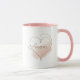A clean white background with a single continuous black line forming a heart, seamlessly transitioning into the word “Mom” in elegant cursive. Soft pastel blush behind the heart for a gentle touch.