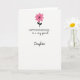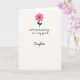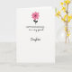 This card shows a simple white background with a single flower at the top, like a small token offered with quiet affection ❤️. The flower has rounded petals in medium pink, and its center is a black starburst that feels like a little spark between two close friends. A thin black stem curves downward with two small, dark green-black leaves, giving the image a gentle, reaching motion. Beneath the flower, a short greeting sits centered in black, all in uppercase with a classic, formal look. Below that, a longer line appears in a flowing cursive style, also in black, as if someone leaned in to add a more intimate note. The wide open space around everything keeps the focus on the flower and the words, like a calm pause before a hug 🌼. At the top, the medium-pink petals stand out against the bright white field, with the black starburst and curved stem leading the eye down to the centered text.