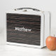 This is a standard metal lunchbox that appears to work just fine. We designed this box ourselves with an uploaded photo and custom text on the front and back. It looks absolutely beautiful except the front of the lunchbox is not centered like it shows in the photo. The print borders don't align with the inset flat part of the box where the preview photo online showed it perfectly centered in there. The back looks nice and centered though.
