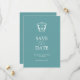 Announce your engagement with this modern save the date card. It features a mix of classic and script typography in white over a solid turquoise blue background. Enter the bride and groom's monogram in the center of a crest. All the colors can be customized to suite your wedding color palette. Use the template fields to personalize with your name and wedding date. Choose from a variety of quality card stocks. My favorite for this is pearl shimmer. Mix and match with many of my designs to create your customized wedding theme. A minimal yet elegant design for weddings and engagement announcements. To see the matching wedding stationery suite visit www.zazzle.com/dotellabelle