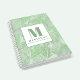 A simple design featuring a simple minimalist monogram name, with a monogrammed initial name letter, a floral green palm tree botanical, a stylish trendy typography font, a simple minimalist elegant leaves design, with watercolor greenery tropical foliage, great for home office school work notes, custom personalized name profession, with either lined, college-ruled, or graph paper, great for composition class work notebook