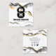 Minimalist fitness trainer business cards featuring a white background that can be changed to any color, black & gold glitter cracks, a kettlebell, your initial, name, title, contact details, and social media icons. This would make a perfect business card for anyone who trains people whether you work in a gym or for yourself. The icons can be removed by clicking on personalize and then tap to customize further.