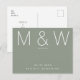 Simple Monogram Minimalist Sage Save the Date Announcement Postcard
