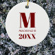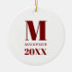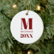Simple Monogram Name Year Red and White Ceramic Ornament