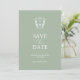 Announce your engagement with this modern save the date card. It features a mix of classic and script typography in white over a solid sage green background. Enter the bride and groom's monogram in the center of a pale blue crest. All the colors can be customized to suite your wedding color palette. Use the template fields to personalize with your name and wedding date. Choose from a variety of quality card stocks. My favorite for this is pearl shimmer. Mix and match with many of my designs to create your customized wedding theme. A sophisticated and elegant design for weddings and engagement announcements. To see the matching wedding stationery suite visit www.zazzle.com/dotellabelle