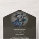 A Gothic wedding all in one invitation featuring a couple of skeleton dancing, with the full moon on the back, on a grunge black background. The card also includes meal choice options for guests to select from, and your guest can scan the code to RSVP, or send the card by regular mail. Perfect for an elegant Gothic Halloween wedding. On the front side, the design includes a monogram and the date of your wedding. Follow the instructions to personalize the invite with your wedding details. Prepare in advance the wording in a separate document, and copy and paste the info.
