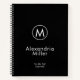 Modern to-do list journal features a modern minimalist monogrammed design in black and white. Custom monogram initial and name in stylish simple font with a complimentary monogram medallion.