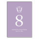 Add a chic, modern touch to your wedding reception with these elegant wedding table numbers. Featuring a stylish monogram crest with the bride and groom’s initials, names, and wedding date, this design showcases simple yet sophisticated typography on a soft lavender purple background.