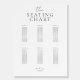Elegant and stylish with contemporary feel. This wedding seating chart features a 6 table template in a set of contemporary fonts in deep dark forest green, against a white background. This template can accommodate a 6 table setting with up to 18 names for each table, except for table 5, which allows for 16 names only. TIP: use Zazzle's own editing tool to delete the floral frame and couple initials (on the LEFT), if more names are required for table 5.