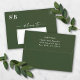 Minimal Simple Solid Monstera Dark Green Wedding Envelopes with Return Address. This modern wedding or any event Envelope design is simple and elegant with a solid background color and trendy fonts. Shown in the Monstera Green Forest Hunter Wedding Colorway. Also features a simple monogram on the Left side of the back of the envelope and an elegant flourish on the front. The Simple Minimal Wedding collection is sure to make your wedding memorable and beautiful!