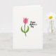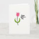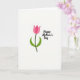 This card features a simple floral illustration on a bright white background, centered on a stylized tulip-like bloom in soft pink tones with a deeper pink shade tucked into the inner petals. A slim, dark green stem rises straight up, while two curved green leaves sweep outward and gently cradle the base, like an affectionate embrace ❤️. The wide open white space around the flower keeps the focus on the bloom and gives the layout a calm, airy feel. To the right of the flower, a short message is printed in flowing black lettering, placed about mid-height so it reads alongside the blossom rather than above or below it. The contrast of black text against white space feels like a direct note shared between close friends, with the flower standing in for the warmth behind the words 🌼. The petals are rounded and smooth-edged, with the darker inner fold adding a quiet sense of depth. The overall arrangement leaves generous margins, with the pink flower centered and the black message aligned to its right on the white field.