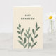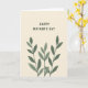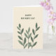 Designed with a soft cream-beige background, this Mother’s Day card keeps the look simple and calm while still feeling affectionate ❤️. Near the top center, the text “HAPPY MOTHER’S DAY” appears in dark lettering, standing out clearly against the light backdrop. From the bottom edge, three slender botanical branches rise upward, like a gentle bouquet reaching toward the words. Each branch carries elongated oval leaves in two shades of muted green, giving the foliage a tender, shaded depth. The upward lines and quiet spacing create a caring, close-knit feel, like a warm presence standing nearby rather than a loud display. The layout leaves plenty of open space around the message, letting the plants and text breathe without crowding each other. The dark text sits above the greenery, while the leaves cluster lower on the card in soft greens with subtle tonal shifts 🌼.