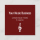 Music lessons business card, on a red background and a white treble clef symbol. With customizable lettering, you can add your own information. You also add your website to allow for connection with a QR code. Great for promoting your musical business.