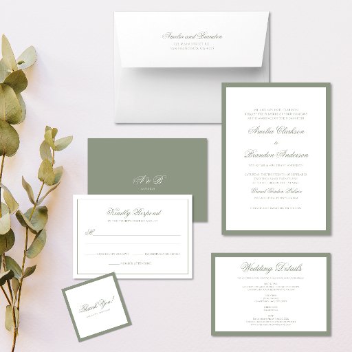 The Simple Muted Sage Green Border Script Wedding RSVP Card features a soft gray-green sage border paired with graceful script typography for an effortlessly elegant look. Designed to complement minimalist, classic, and modern wedding suites, this RSVP card offers timeless simplicity with a refined, understated finish.