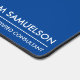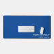 Protect your desk with this large desk/mouse pad featuring two lines of white custom text set against a solid blue background. Add your name, monogram, company name, logo etc - totally and easily customizable. Also makes a great gaming mat.