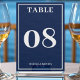 Simple nautical blue and white wedding reception table number card with border. Personalize it with your event details. Change the number for each table you have.