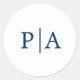 Simple Navy Blue and White Monogram Wedding Classic Round Sticker