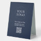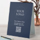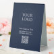 Simple Navy Blue Custom Business Logo QR Code Table Tent