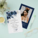 Simple Navy Blue Flowers QR Code & Photo Wedding Flyer