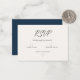 This is a simple elegant navy blue and light orange RSVP wedding card. This minimalist wedding RSVP card is perfect for a classy and simple wedding celebration.