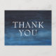 Modern and masculine thank you postcard featuring a simple design with "Thank You" in large bold white letters over a dark navy blue watercolor wash. The backside has your return address and personal message along with your signature, title and business name. This design is great for any business professional.