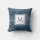 Simple Navy Blue Subtle Marble Modern Monogram Throw Pillow