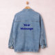 You can create your own message in navy blue text on this denim jacket.