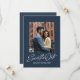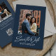 This stylish save the date features a retro inspired script "save the date" under a single photo on a classic navy blue background along with simple custom text. The back of this modern save the date has a coordinating blue stripe along with a horizontal photo, room for a custom message and a QR code for your wedding website. This vertical design is great for a trendy and stylish couple and it's a great way for the engaged couple to share wedding information with friends and family. Find more colors and styles in the collection by Lea Delaveris Design. Also available as a digital save the date download.