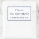 Shipping label for fine art that reads "please do not bend contains fine art" in navy blue against white. Navy blue borders surround the text. A simple, clear design.