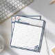 Heartwarming Navy Blue and white note pad for small business. The design features a heartwarming house Logo line in minimalist style. There is designated space for essential contact information, including mobile no, address, website and emails, as well as a QR code. It enables immediate connection with Clients without compromising abundant space for leaving messages.
