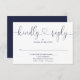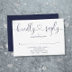 Simple Navy Blue White Script Heart Kindly Reply RSVP Card