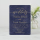 Simple Navy Watercolor & Gold Wedding Invitation