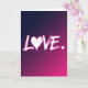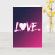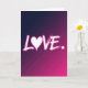 This card shows the word “LOVE” in bright white, glowing letters across the center of the front. The “O” is drawn as a white heart, giving the message a sweet, romantic focus 🥰. Behind the text, the background fades from deep indigo at the top down into magenta and fuchsia near the bottom, like a night sky turning warm. The letters look like they were painted with a light-filled brush, with soft edges that make them stand out against the darker colors. A small glowing dot sits at the end of the word, like a tiny period that neatly finishes the message. The overall look feels modern and intimate, like a quiet “I love you” said with confidence. It’s meaningful to give because it says everything in one clear word, while still feeling heartfelt and close ❤️. Hope it helps you share your Valentine’s Day sentiments.