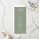 Customize these Stylish Simple Basic Vertical Wedding Program Cards, designed with white text on an olive green background.