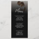 Black ombre wedding reception menu. Personalize it with your meal list and a newlywed couple photo.