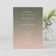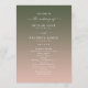 Simple Ombre Dark Green & Pink Wedding Ceremony Program. This modern minimal Order of Services Card is simple classic and elegant with a subtle ombre gradient fade and a pretty signature script calligraphy font with tails. Shown in the Chic Ombre Dark Green & Pink Colorway. Also, optional custom photograph on the backside. Available in several color options, or feel free to edit the colors from within the editor (click customize further while personalizing).