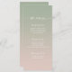 Simple Ombre Leaf Green & Blush Pink Wedding Reception Dinner Menus. This modern chic Menu Card is simple classic and elegant with a subtle ombre gradient fade and a pretty signature script calligraphy font with tails. Shown in the new Colorway. Available in several color options, or feel free to edit the colors from within the editor (click customize further while personalizing).