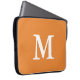 A white monogram is on an orange laptop sleeve. You can change the letter to show the correct initial.