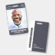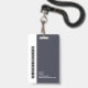 A modern and simple badge that does not distract from the important details. Easy to read from afar. Add a custom logo and company details. Add the employee's name, photo, and professional title. The bar of color can be modified to match the company's official colors. At the back, add more information such as return address and the employee's ID number. Perfect for oval shaped logos.