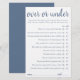 Simple "Over or Under?" baby shower or gender reveal party quiz game featuring a fun, casual hand-lettered script. The classic design includes a modern handlettered quote typography overlay. For other colors or matching products, please visit the JustFharryn Zazzle store, or contact the designer, c/o Fharryn@yahoo.com All rights reserved. #bohochic #zazzlemade