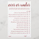 Simple "Over or Under?" baby shower or gender reveal party quiz game featuring a fun, casual hand-lettered script. The classic design includes a modern handlettered quote typography overlay. For other colors or matching products, please visit the JustFharryn Zazzle store, or contact the designer, c/o Fharryn@yahoo.com All rights reserved. #bohochic #zazzlemade