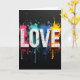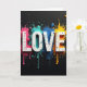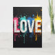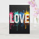 This design shows the word “LOVE” in big, white 3D letters centered on a deep black background. The letters look crisp and solid, like they’re standing out from the card. Bright paint splashes burst around them, with hot pink near the “L,” turquoise around the “O,” deep blue by the “V,” and a sunny yellow-orange by the “E.” You can see drips, round droplets, and tiny speckles scattered across the letters and into the dark space, like color is flying through the air. The only text is “LOVE,” and it’s in thick, all-caps lettering that sits right in the middle where your eyes land first. It feels meaningful to give because it’s simple and direct, but the color and motion make it feel full of feeling, like love can be loud, sweet, and real all at once 🥰❤️. Hope it helps you share Valentine’s Day sentiments with someone you care about.