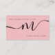 Simple Pale Pink Minimal Monogram Script Black Business Card