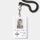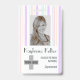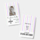 A minimalist and simple design featuring pastel stripes and white colored background, photo, barcode and logo template. Easily customize this badge to your brand. -designed with ❤ by Zaubershirts-