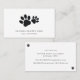 Simple, modern and minimal dog groomer paw print business cards featuring paw prints along with your company name on the front and company details on the back all in a modern font. Perfect for pet grooming professionals and others in the animal care industry. White background with black text which can be changed if preferred. Simple to customize by adding your own business details.