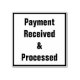 This rubber stamp design features the message "Payment Received & Processed". It could be used to mark an invoice or bill as having been paid in full.