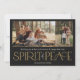 These simple holiday photo greeting cards feature the greeting, "Wishing you a Merry Christmas and a Happy New Year," along with the greeting, “Spirit of Peace,” in large ivory and gold letters on an black background with placeholders to add two of your favorite photos, family name & the year.
