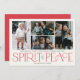 These simple holiday photo greeting cards feature the greeting, "Wishing you a Merry Christmas and a Happy New Year," along with the greeting, “Spirit of Peace,” in large green and red letters on an ivory background with placeholders to add four of your favorite photos, family name & the year.