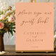 This pretty peach poster is the new trending color for summer brides. Our sweet peach wedding guestbook foam board sign features elegant light brown script for a trendy, minimalist event in the afternoon for a feminine bride who loves to stay current and modern. Please sign our guest book.